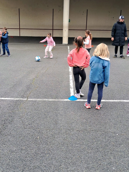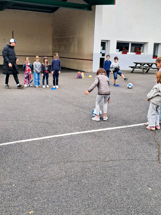 Les élèves de CE1 ont entamé un tout nouveau cycle d’Éducation Physique et Sportive (EPS) consacré au football, qui se déroule chaque mardi matin. Ce cycle est animé par Zachary, un étudiant en BPJEPS (métier d’animateur, de moniteur, d’éducateur sportif), qui accompagne les enfants dans la découverte de ce sport collectif très apprécié.