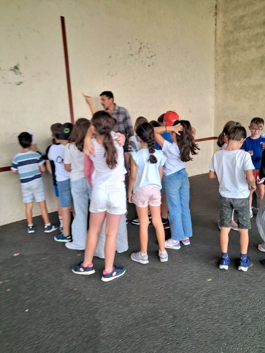 Cette semaine, les élèves du CP au CM2 ont participé à des olympiades de pelote basque organisées par Antton AMULET à la salle Airetik. Au programme des différents ateliers : cibles au mur, parcours de motricité, kiñela, découverte d’instruments (Xister/Xare), le jeu de la porte et course /relais. Les enfants ont passé une agréable matinée sportive !